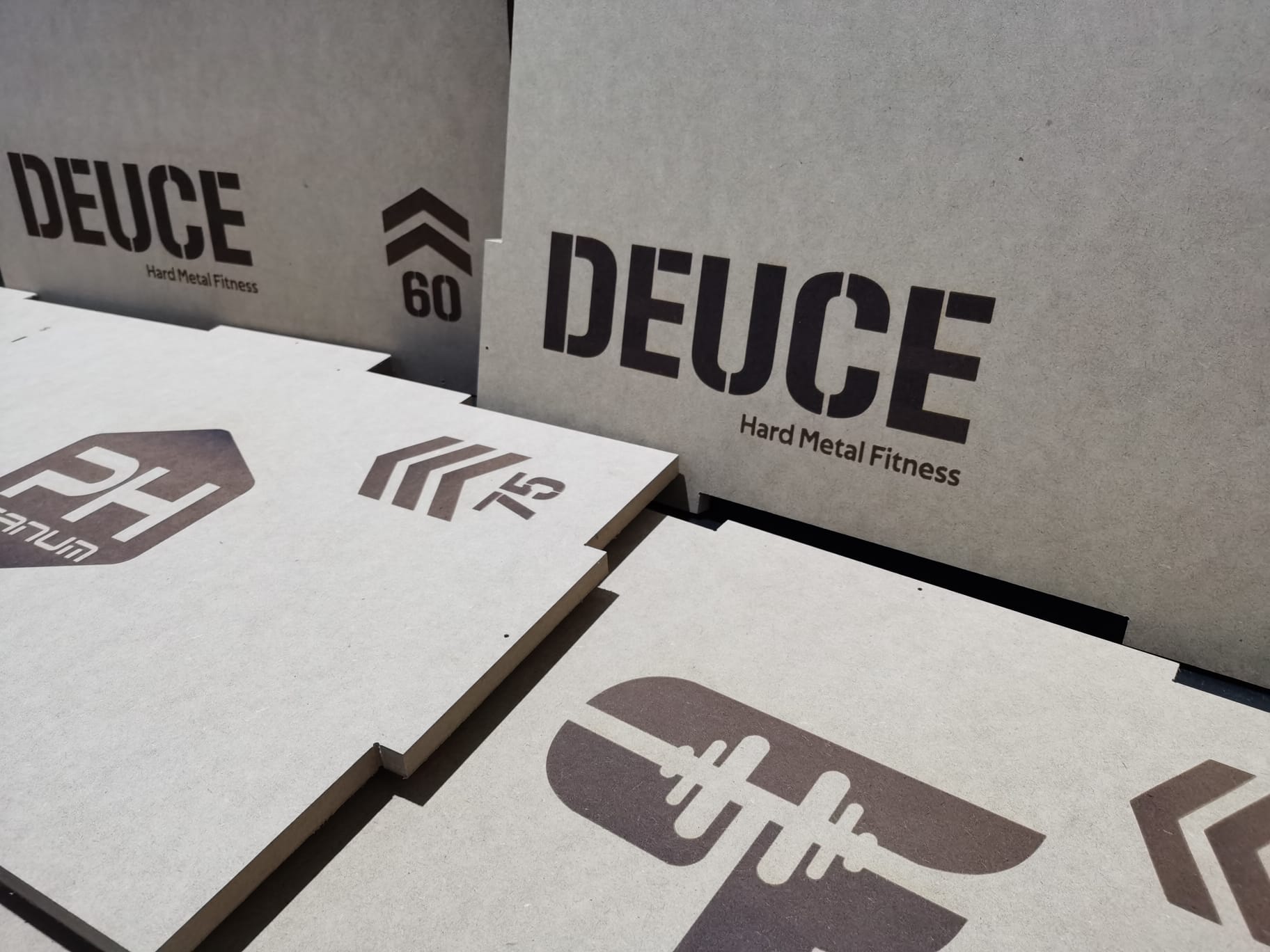 Deuce Hard Metal Fitness branding laser etched